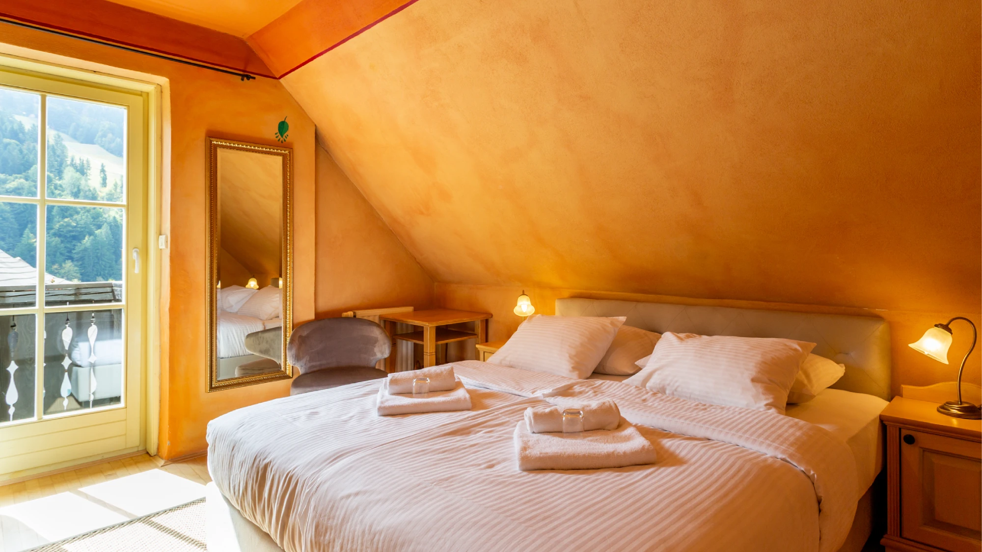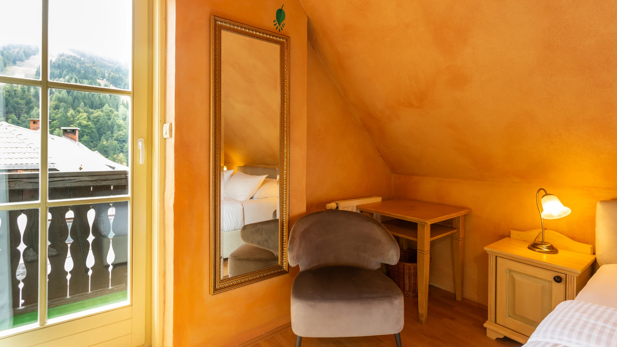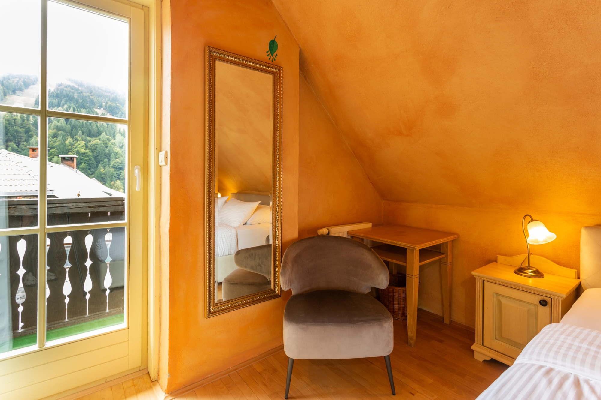 Prijetna in udobna soba z zasebnim balkonom ponuja čudovit razgled na slikovito vasico in neokrnjeno naravo. Uživajte v mirnem okolju, sproščujočih trenutkih na svežem zraku in toplini prostora, ki je popoln za romantičen oddih v dvoje ali prijetno bivanje z otrokom. Idealna izbira za nepozabne družinske trenutke ali sproščujoč pobeg v naravo.